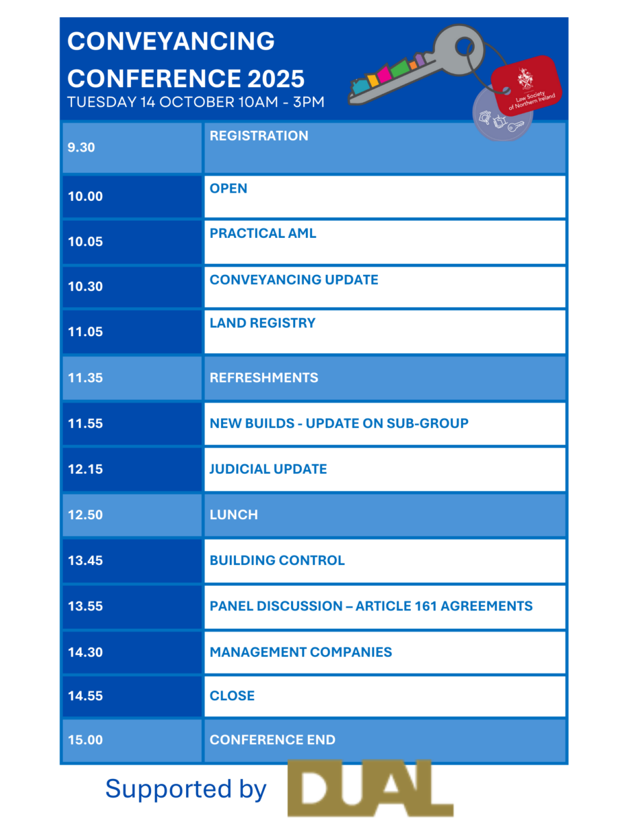 As part of the Society’s Compulsory Conveyancing CPD programme the 2025 Conveyancing Conference has been organised for Tuesday 14 October 2025.