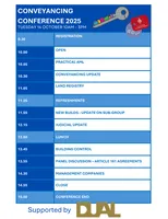 Attendance at this conference will fully cover the 2025 Compulsory Conveyancing CPD requirement. Any additional hours can be carried over into the Group Study category.