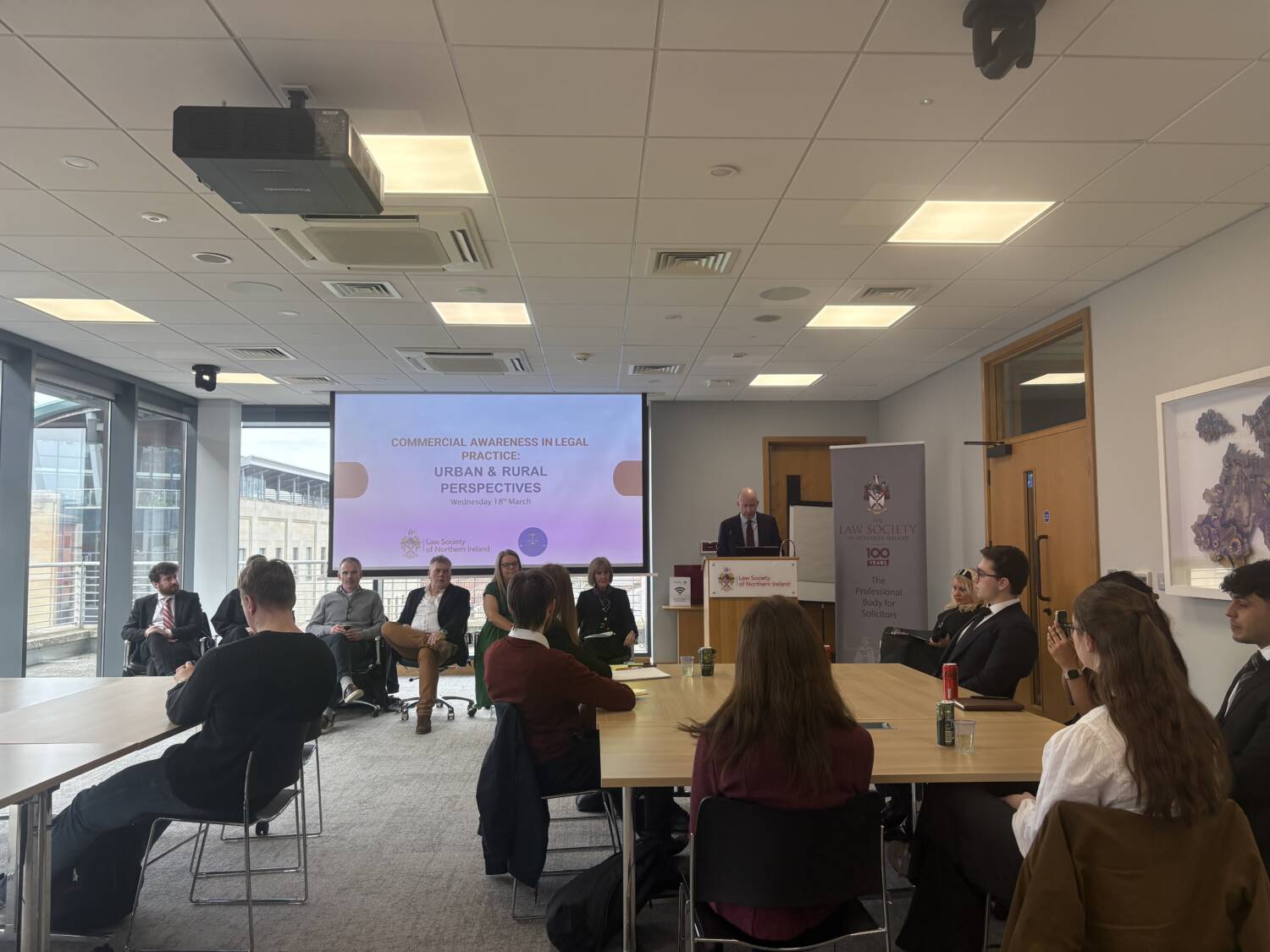 Panel discussions explored the distinctions between large commercial firms and regional or rural practices, the challenges of recruitment and retention within Northern Ireland, expectations placed on modern trainees, and the broader economic trends influencing legal work and client needs.